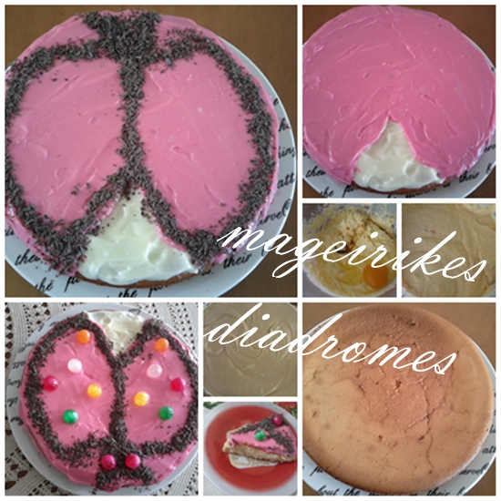 Εγώ το έφτιαξα πασχαλίστα κάνοντας το διάγραμμα στα φτερά, τις κεραίες και το κεφάλι με τρούφα και καραμελίτσες στα φτερά, εσείς μπορείτε να βάλετε σταγόνες σοκολάτας. Επίσης μπορούμε να βάλουμε κρέμα όποια γεύση μας αρέσει.