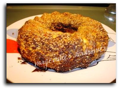 - Αδειάζουμε το μείγμα , πασπαλίζουμε πάλι με σουσάμια και ψήνουμε στους 180 βαθμούς για 60 λεπτά περίπου έως ότου ροδίσει καλά.