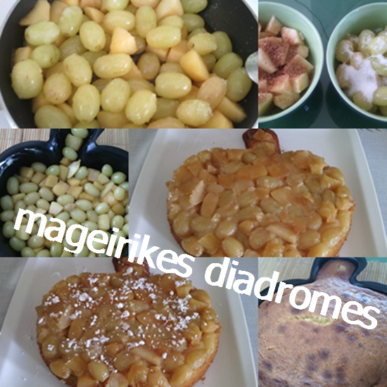 Ανάποδο κέικ με καραμελωμένα σταφύλια και μήλα