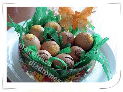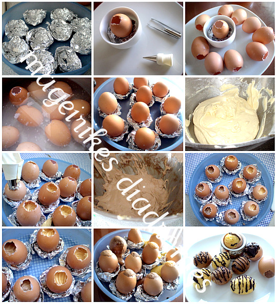 - Μπορείτε αντί να βάλετε παντεσπάνι να τα γεμίσετε με σοκολάτα υγρή και μέσα μικρά μπισκοτάκια ή μια γκανάς σοκολάτας και χρωματιστή τρούφα στο τέλος ή ό, τι σκεφτείτε που να μπορεί να γίνει μέσα σε ένα αυγό!