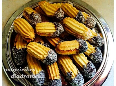 - Πάνω σε μία λαδόκολλα, φτιάχνουμε τα μπισκότα μας στο σχήμα που θέλουμε χρησιμοποιώντας κορνέ ζαχαροπλαστικής. Ψήνουμε σε προθερμασμένο φούρνο στους 160-170 βαθμούς C για 15-20 λεπτά.