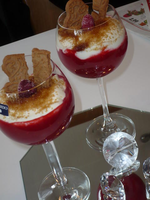 - Σέ ποτήρια βάζουμε πρώτα την Σος και μετά την κρέμα, πασπαλίζουμε μέ τήν ζάχαρη καφέ καί τό βάζουμε στό ψυγείο καλύτερα μία μέρα πρίνε τό σερβίρουμε
