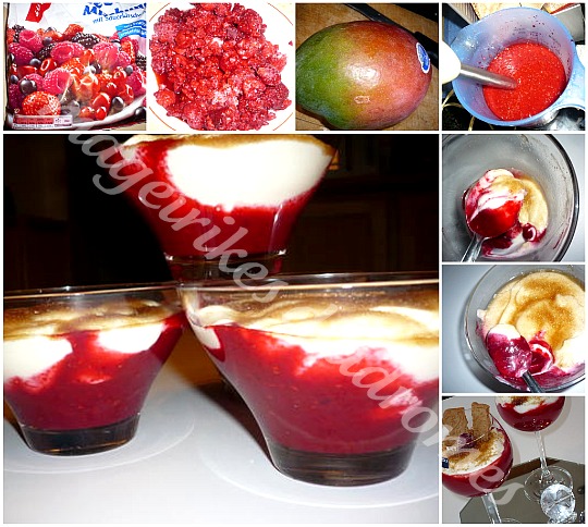 - Κόβουμε με το μούλτι στό μπλέντερ τα φρούτα όλα μαζί καί τό περνάμε από τό τρυπητό, να έχουμε έτσι μία σος