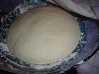 Το σκεπαζουμε με αλευρι και αφηνουμε για 10 λεπτα να φουσκωσει