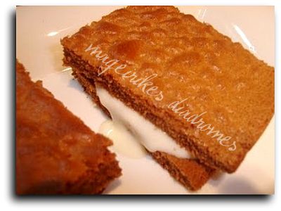 - Κόβουμε το παντεσπάνι στα δύο και βάζουμε στην μέση την κρέμα.