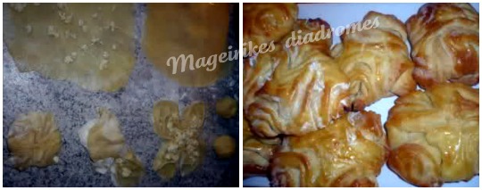 - Πλάθω 30 μπαλάκια και ανοίγω με τον πλάστη,πάνω σε νισεστέ πολύ λεπτά φύλλα.
