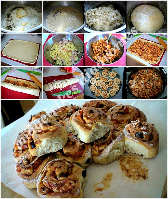 - Τυλίγουμε σε ρολό σφικτό και κόβουμε με αλευρωμένο μαχαίρι πάντα και με προσοχή 14 φέτες.