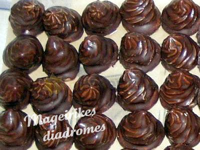 - Μετά τα βουτάμε στη λιωμένη σοκολάτα κουβερτούρα και πάλι στο ψυγείο.