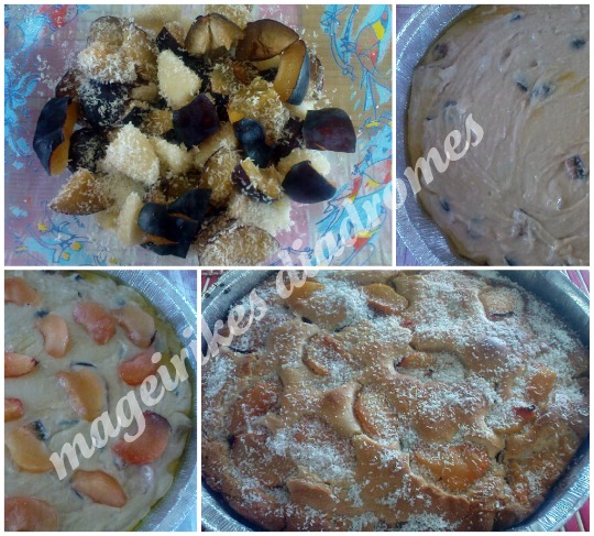 Κέικ με δαμάσκηνα, αχλάδια και καρύδα