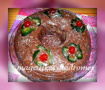Αν θέλουμε όταν κρυώσει μπορούμε να το περιχύσουμε με λιωμένη σοκολάτα γάλακτος, λευκή ή κουβερτούρα.