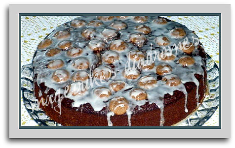 Ανακατεύουμε την άχνη με το λικέρ και το ρίχνουμε επάνω στο γλυκό