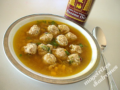 Νόστιμη σούπα με καλαμπόκι και μπαλάκια κοτόπουλου. Μια άλλη γεύση και αισθητική από την ασιατική κουζίνα.