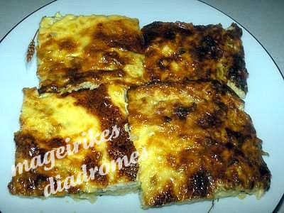 - Ανοίγουμε το φούρνο και ρίχνουμε επάνω στην πίτα το γάλα με τα 2 αυγά χτυπημένα .Προσέχουμε να πάει παντού και ξαναβάζουμε την πίτα στον φούρνο για 40 λεπτά .
