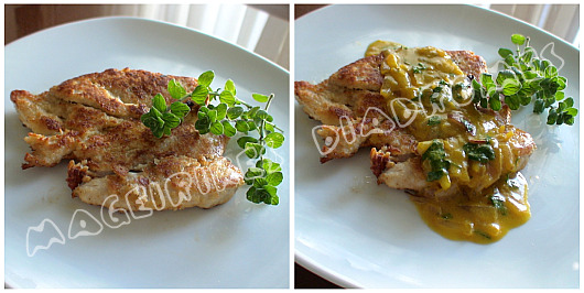 2 στήθη κοτόπουλου ανοιγμένα στη μέση αλλά όχι χωρισμένα και ελαφρά χτυπημένα ή ολόκληρα τα στήθη κοτόπουλου χτυπημένα ελαφρά.
