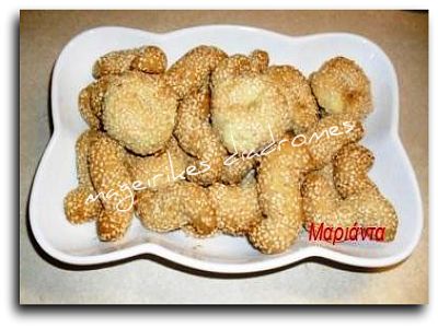 - Πλάθουμε κουλουράκια σε ότι σχήμα θέλουμε, τα κυλάμε στο σουσάμι και τα ψήνουμε στους 175 βαθμούς με αέρα μέχρι ν αρχίσουν να παίρνουν ένα ελαφρύ χρυσαφί χρώμα.