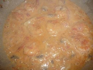 4) Αφού αφήσουμε να πάρει μια βράση και αρχίσει να μαγειρεύεται η ντομάτα ρίχνουμε λίγη κρέμα γάλακτος και το κουταλάκι oyster sause .