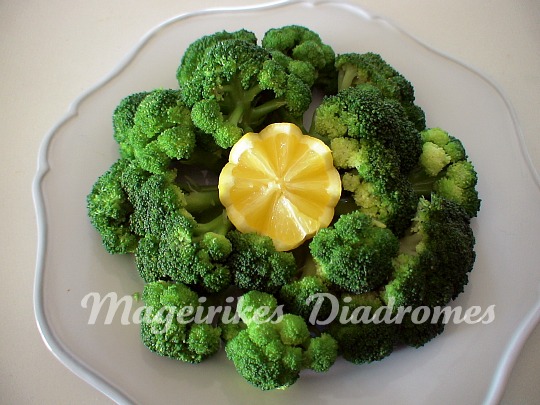 Για να πετύχουμε όμορφο φωτεινό πράσινο χρώμα στο μπρόκολο, όπως στη φωτό, κάνουμε τα παρακάτω. Κόβω σε μικρά μπουκετάκια το μπρόκολο και το πλένω καλά. Βράζω μπόλικο αλατισμένο νερό και το ρίχνω μέσα, το βράζω 5 λεπτά.Πρέπει να «κρατάει» , γιατί δε το θέλουμε λασπωμένο. Παράλληλα έχω γεμίσει ένα μπολ με κρύο νερό που έχω προσθέσει μερικά παγάκια. Μόλις στραγγίξω το μπρόκολο, το ρίχνω αμέσω στο κρύο νερό για να σταματήσω το βρασμό. Αυτό θα του διατηρήσει το πράσινο χρώμα και δε θα είναι μουντό, παράλληλα θα έχει κρατήσει όλες τις βιταμίνες του.