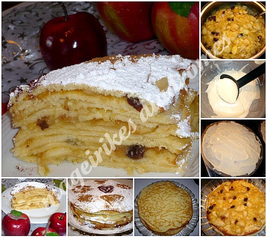 - Τώρα βάζουμε το πρώτο πιάτο σέ μία πιατέλα τούρτας, απλώνουμε 3-4 κ,σ από τήν κομπόστα μήλου και συνεχίζουμε έτσι καί στον επόμενο όροφο. Αλείψτε πάλι με κομπόστα μήλου και έτσι να συνεχίσει έως ότου όλα τελειωσουν.