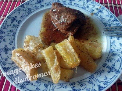 - Ψήνουμε 2 ώρες περίπου, στο τελευταίο τέταρτο ανοίγουμε το καπάκι να πάρει χρώμα!