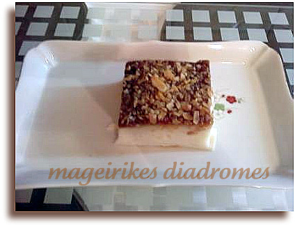 - Την αφήνουμε να κρυώσει, κόβουμε τετράγωνα κομμάτια και τη ραντίζουμε με ροδόνερο.
