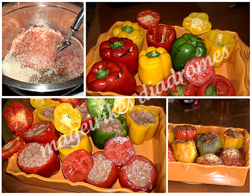 - Ζυμώνω καλά, χωρίζω σε 9 μπιφτεκάκια και γεμίζω τις πιπεριές ή και τις ντομάτες με αυτά.