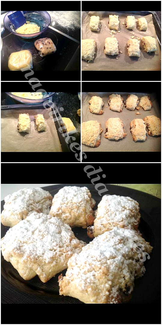 - Οταν κρυωσουν, πασπαλιζουμε με αχνη ζαχαρη και τα βάζουμε σε κουτί για μπισκοτα, αντέχουν 15 ημέρες