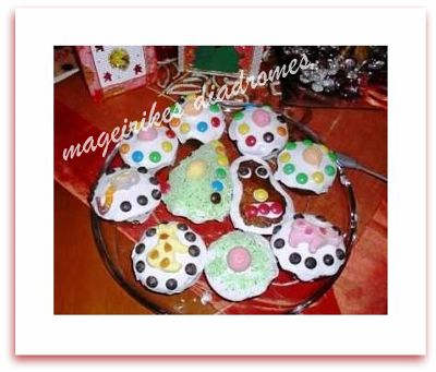 Επίσης για τη διακόσμηση χρησιμοποιούμε ψηφίδες σοκολάτας, smarties και ζαχαρωτά.