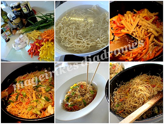 Φτιάχνουμε ρυζομακάρονα με λαχανικά, τα λεγόμενα τηγανητά μακαρόνια. Εύκολο και γρήγορo πιάτο, από την αγαπημένη ασιατική κουζίνα.