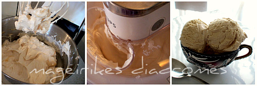 - Παγώνω το μείγμα στην παγωτομηχανή ή βάζω στην κατάψυξη και χτυπώ κατά διαστήματα.