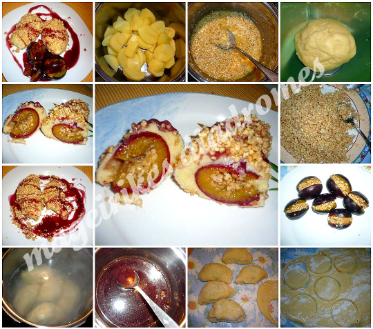 - Με ένα ποτήρι κόβουμε κύκλους μεγαλύτερους από τα δαμάσκηνα . Με αλευρωμένα χέρια παίρνουμε την κομμένη ζύμη και τυλίγουμε μέσα 1 δαμάσκηνο , το πατάμε καλά να κλείσει , έτσι κατά αυτόν τον τρόπο τυλίγουμε τα 8 δαμάσκηνα .