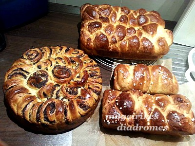 Εγω εκανα ενα γεμιστο με παπαρουνοσπορο, επιθυμια του συζυγου, με σταφιδες και ξυστό μαρσιπαν (αμυγδαλόπαστα). Το τσουρέκι με τον παπαρουνοσπορο το άνοιξα με το ξύλο κουζίνας, περίπου 1 πόντο. Έβαλα το παπαρουνοσπορο, με σταφίδες και μάρσιπαν τριμμένη και το τύλιξα και το έκοψα στους 3 πόντους φέτες. Και το έβαλα στην φόρμα και ακολούθησα τη διαδικασία όπως τα τσουρέκια τα άλλα.