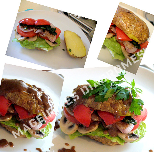 Καλύπτω τα λαχανικά με το άλλο κομμάτι της πατάτας και σχηματίζω σάντουιτς.