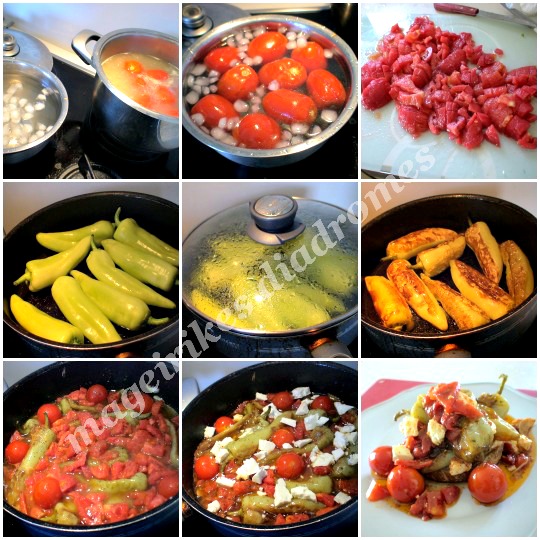 - Μισό κιλό φρέσκες ντομάτες ξεφλουδισμένες και ξεσποριασμένες κομμένες σε μικρά καρέ