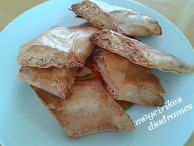 - Τυλίγουμε σε ρολό, κόβουμε σε μέτρια πιτάκια, τα βάζουμε σε ταψί καλυμμένο με λαδόκολλα, τα αλείφουμε με σησαμέλαιο ή απλό λάδι.