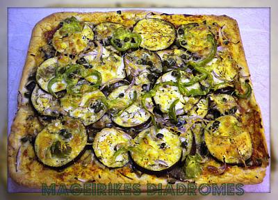 Μια παραλλαγή της βασικής συνταγής για Πίτσα Margherita, Αφαιρώντας το ελαιόλαδο από τη ζύμη και τη σάλτσα και οποιαδήποτε άλλη λιπαρή επικάλυψη. Καλύπτουμε με λαχανικά της αρεσκείας μας φτιάχνοντας μια πίτσα εξίσου νόστιμη!