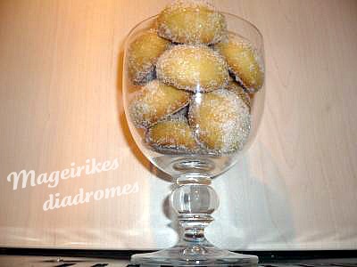 - Τα αφήνω για λίγο στο ταψί,αλλά πρωτού κρυώσουν τα τυλίγω στη ζάχαρη.