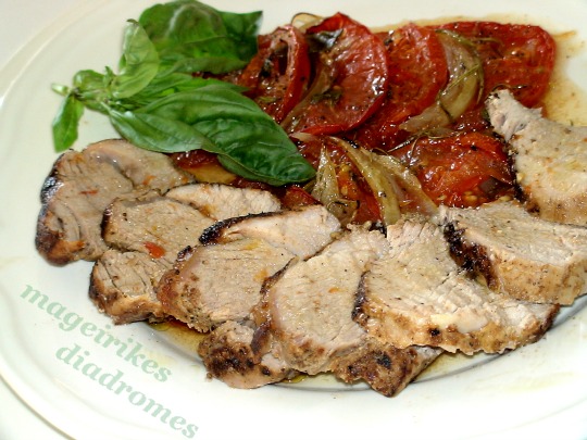 - Κόβουμε το κρέας μας σε φιλετίνια και τα σερβίρουμε πάνω στις ντομάτες, περιχύνοντας το νόστιμο ζουμάκι τους.