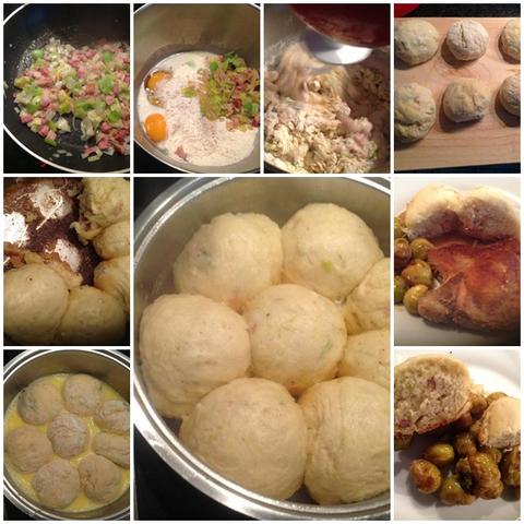 - Σε ενα τηγάνι βαζουμε το λαδι να καψει ριχνουμε το μπεικον, το κρεμμυδια και το πρασο τα αφηνουμε λιγο να παρουν χρωμα μετα τα αφηνουμε να κρυωσουν.