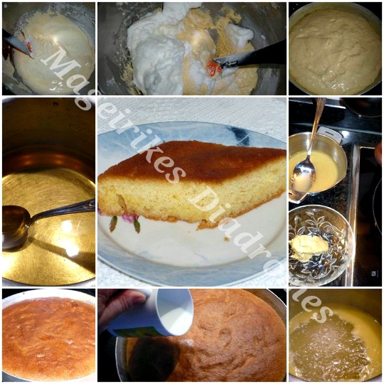 - Όταν βγαζουμε το ρεβανι απο το φουρνο, ριχνουμε επανω αμεσως το καυτο γαλα,