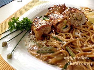 Ρολά Γαλοπούλας με σουσάμι και κολοκυθάκια