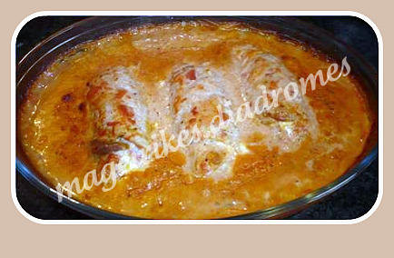 3. Ανακατεύω όλα τα υλικά για τη σάλτσα και τα ρίχνω στα ρολά μέσα στο πυρέξ.