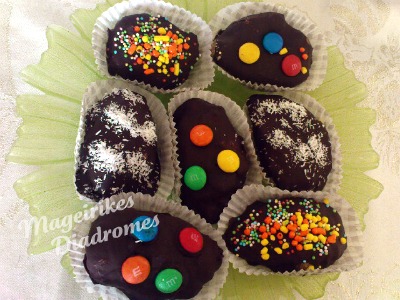 - τρούφα,καραμελίτσες,καρύδα ή ότι θέλετε για να διακοσμήσετε τα αυγουλάκια.