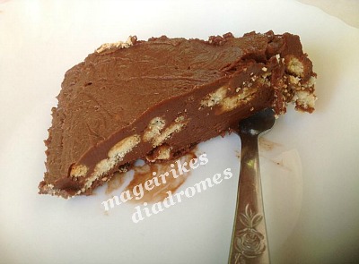 - ½ πακέτο σπασμένα Petit Beurre ή όπως στη δική μου περίπτωση Αμερικάνικα σοκολατένια cookies