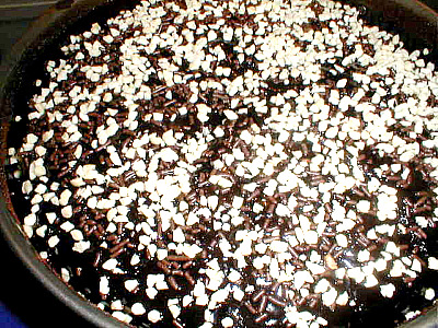 - Μετα το κοβουμε σε κομματια και ριχνουμε το υλικο της φλιτζανας που κρατησαμε