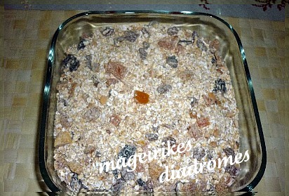 - Αν θέλουμε μπορούμε να προσθέσουμε αφυδατωμένο ανανά, μπανάνες αφυδατωμένες και παπάγια αφυδατωμένη όλα κομμένα μικρά κομματάκια .