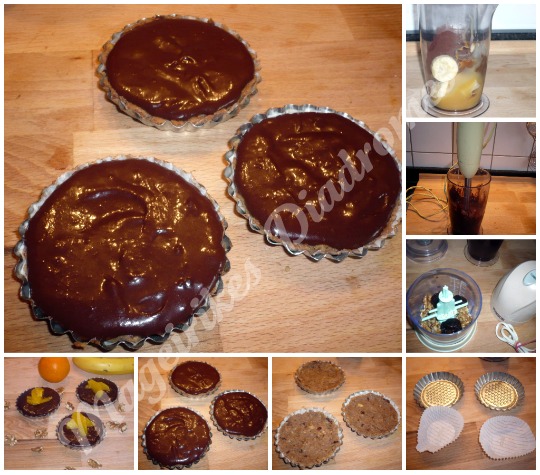 - Βαζουμε το μειγμα μεσα στην φορμα τάρτας και παταμε καλα , εγω εβαλα για καλυτερα μεσα στα φορμακια χαρτακια απο μαφινς, στη συνέχεια, τοποθετήστε στο ψυγείο.