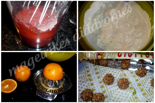 Το γιαούρτι και την μυζήθρα τα ανακατεύουμε με τον χυμό και λίγη ζάχαρη