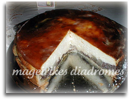 - Μετά βάζουμε επάνω την κρέμα μυζήθρας και ψήνουμε για 60 λεπτά, έως να πάρει ένα χρυσό σκούρο χρώμα
