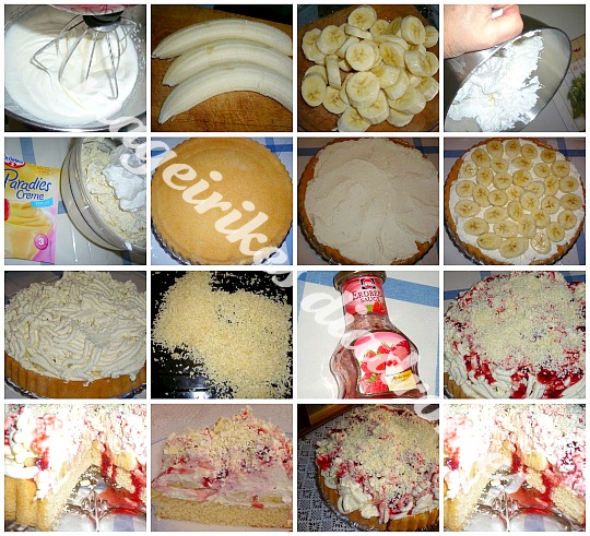 - Κόβουμε τις μπανανες σε ροδελες και τις ραντιζουμε με χυμο λεμονι για να μην μαυρισουν