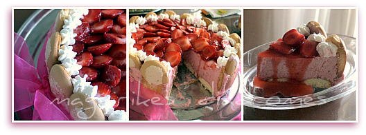 Στη συνέχεια στρώνω την επιφάνεια με τα φετάκια φράουλας και στολίζω με σαντιγί…και φαντασία!